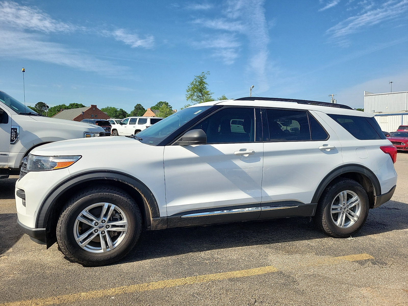 1st Row Heated Seats 3.58 Non-Limited-Slip Rear Axle Ratio 3rd row seats: bench 4-Wheel Disc Brakes 6 Speakers ABS brakes Air Conditioning Alloy wheels AM/FM radio: SiriusXM AM/FM Stereo Auto High-beam Headlights Automatic temperature control Brake assist Bumpers: body-color Compass Delay-off headlights Driver door bin Driver vanity mirror Dual front impact airbags Dual front side impact airbags Electronic Stability Control Emergency communication system: SYNC 3 911 Assist Equipment Group 200A Exterior Parking Camera Rear FordPass Connect Four wheel independent suspension Front anti-roll bar Front Bucket Seats Front Center Armrest Front dual zone A/C Front reading lights Fully automatic headlights Heated door mirrors Heated front seats Illuminated entry Knee airbag Leather steering wheel Low tire pressure warning Occupant sensing airbag Outside temperature display Overhead airbag Overhead console Panic alarm Passenger door bin Passenger vanity mirror Power door mirrors Power driver seat Power Liftgate Power passenger seat Power steering Power windows Rear air conditioning Rear anti-roll bar Rear reading lights Rear window defroster Rear window wiper Remote keyless entry Roof rack: rails only Security system Speed control Speed-sensing steering Speed-Sensitive Wipers Split folding rear seat Spoiler Steering wheel mounted audio controls SYNC 3 Communications & Entertainment System SYNC 3/Apple CarPlay/Android Auto Tachometer Telescoping steering wheel Tilt steering wheel Traction control Trip computer Unique Cloth Captain's Chairs Variably intermittent wipers Wheels: 18"5-Spoke Sparkle Silver-Painted Alum.Certified. Oxford White 2021 Ford Explorer XLT 4WD 10-Speed Automatic 2.3L EcoBoost I-4We're the 4th Oldest Ford Dealership in America!!! Recent Arrival! Odometer is 19146 miles below market average! 20/27 City/Highway MPGCertification Program Details: Ford Blue Advantage: Blue Certified* 139 Point Inspection* Transferable Warranty* Vehicle History* Warranty Deductible: $100* Roadside Assistance* Limited Warranty: 3 Month/4000 Mile (whichever comes first) after new car warranty expires or from certified purchase date* and 11000 FordPass Rewards Points to use toward first maintenance visit