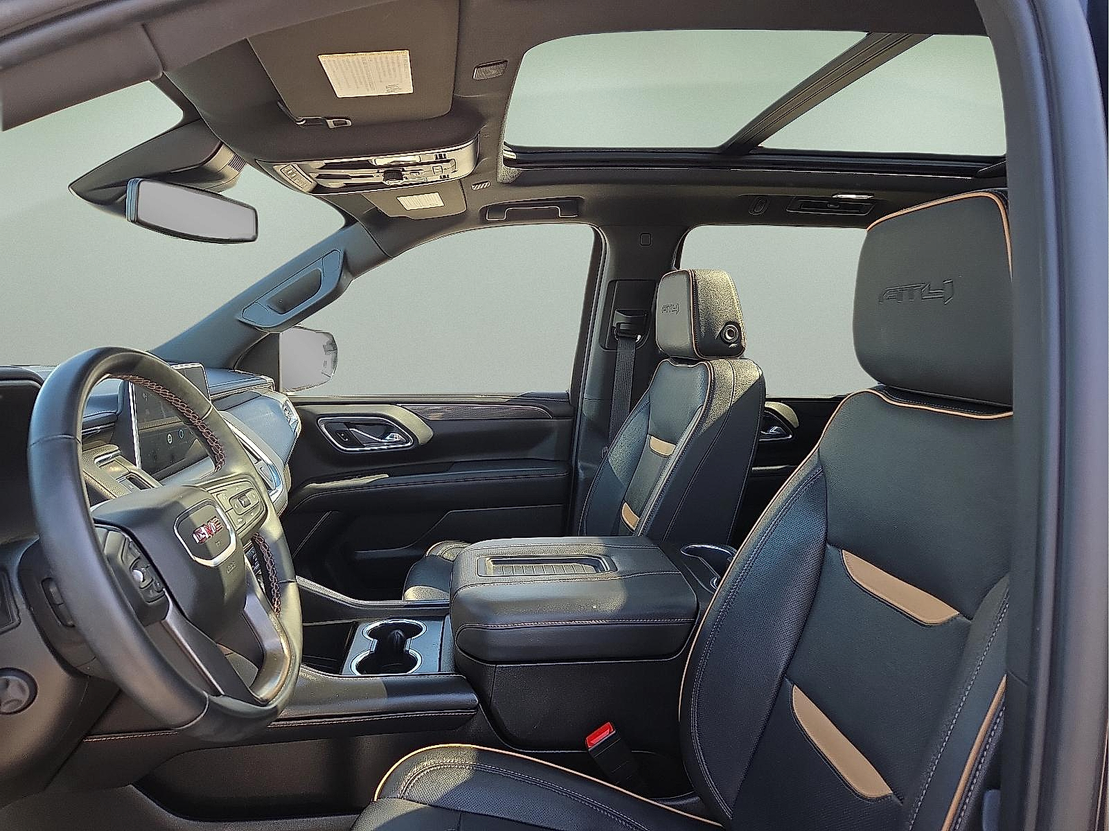 4WD 15"Diagonal Multi-Color Head-Up Display 2 Presets For Outside Rearview Mirrors 3 Years of GMC Connected Services 3 Years of OnStar Safety & Security 3rd Row 60/40 Power-Folding Split-Bench Seat Air Ride Adaptive Suspension AT4 Premium Plus Package Black Roof-Mounted Luggage Rack Side Rails Bose 9-Speaker Stereo Audio System Feature Bright Front & Rear Door Sill Plates Dual-Pane Panoramic Power Sunroof Electronic Limited Slip Differential (eLSD) Extra Capacity Cooling System Front High-Approach Angle Fascia Hands-Free Power Programmable Rear Liftgate HD Surround Vision Heated & Ventilated Driver & Front Passenger Seats Heated 2nd Row Outboard Position Seats Heated Driver & Front Passenger Seats Heated Steering Wheel Heavy-Duty Air Filter Hill Descent Control Inside Rear-View Auto-Dimming Mirror License Plate Front Mounting Package Max Trailering Package Outside Heated Power-Adjustable Mirrors Power Release 2nd Row 60/40 Split-Folding Bench Seat Power Tilt & Telescopic Steering Column Power-Retractable Assist Steps Preferred Equipment Group 4SB Premium Capability Package w/Active Response 4WD Rear Pedestrian Alert Red Horizontal-Mounted Recovery Hooks Safety Alert Seat Technology Package Universal Home Remote Wireless Charging 3 Years of OnStar Safety & Security (DISC) 3.23 Rear Axle Ratio 3rd row seats: split-bench 4-Wheel Disc Brakes 9 Speakers ABS brakes Adaptive suspension Air Conditioning Alloy wheels AM/FM radio: SiriusXM with 360L AM/FM Stereo Apple CarPlay/Android Auto Auto High-beam Headlights Auto-dimming door mirrors Auto-dimming Rear-View mirror Auto-leveling suspension Automatic Emergency Braking Automatic temperature control Black Nameplates (LPO) Black Roof Rack Cross Rails Brake assist Bumpers: body-color Compass Delay-off headlights Driver door bin Driver vanity mirror Dual Exhaust System Dual front impact airbags Dual front side impact airbags Electronic Stability Control Emergency communication system: OnStar and GMC connected services capable Floor Console Following Distance Indicator Forward Collision Alert Four wheel independent suspension Front & Rear Park Assist Front anti-roll bar Front Bucket Seats Front Center Armrest Front dual zone A/C Front fog lights Front Pedestrian Braking Front reading lights Fully automatic headlights Garage door transmitter Heated door mirrors Heated front seats Heated rear seats Heated steering wheel Hitch Guidance w/Hitch View Illuminated entry Integrated Trailer Brake Controller IntelliBeam Automatic High Beam On/Off Lane Change Alert w/Side Blind Zone Alert Lane Keep Assist w/Lane Departure Warning Low tire pressure warning Magnetic Ride Control Suspension Memory seat Navigation System Occupant sensing airbag Outside temperature display Overhead airbag Overhead console Panic alarm Passenger door bin Passenger vanity mirror Perforated Leather Seating Surfaces Power door mirrors Power driver seat Power Liftgate Power passenger seat Power Release 2nd Row Bucket Seats Power steering Power windows Rain sensing wipers Rear air conditioning Rear anti-roll bar Rear Cross Traffic Alert Rear reading lights Rear seat center armrest Rear window defroster Rear window wiper Remote keyless entry Roof rack: rails only Security system SiriusXM w/360L Smart Trailer Integration Indicator Speed control Speed-sensing steering Split folding rear seat Spoiler Steering wheel memory Steering wheel mounted audio controls Tachometer Telescoping steering wheel Tilt steering wheel Traction control Trailer Side Blind Zone Alert Trip computer Turn signal indicator mirrors Variably intermittent wipers Ventilated front seats Voltmeter Wheels: 20"x 9"6-Spoke Machined Aluminum 4WD 15"Diagonal Multi-Color Head-Up Display 2 Presets For Outside Rearview Mirrors 3 Years of GMC Connected Services 3 Years of OnStar Safety & Security 3rd Row 60/40 Power-Folding