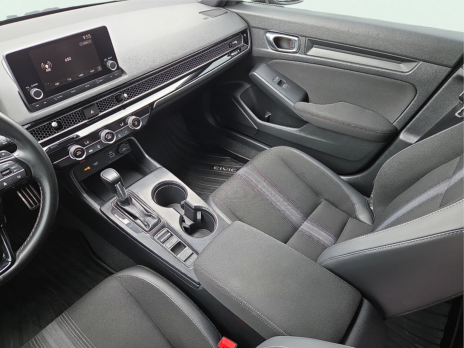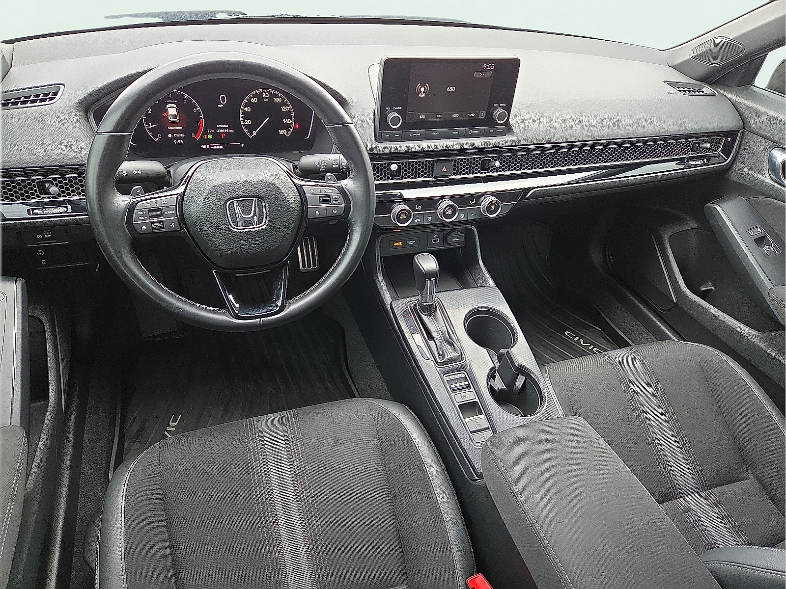 Black w/Cloth/Leatherette Seating Surfaces 18"Alloy Wheels 4-Wheel Disc Brakes 8 Speakers ABS brakes Adaptive Cruise Control: Adaptive Cruise Control (ACC) with Low-Speed Follow Air Conditioning Alloy wheels AM/FM radio Apple CarPlay/Android Auto Auto High-beam Headlights Automatic temperature control Brake assist Bumpers: body-color Cloth/Leatherette Seating Surfaces Delay-off headlights Driver door bin Driver vanity mirror Dual front impact airbags Dual front side impact airbags Electronic Stability Control Emergency communication system: HondaLink Exterior Parking Camera Rear Four wheel independent suspension Front anti-roll bar Front Bucket Seats Front Center Armrest Front reading lights Fully automatic headlights Illuminated entry Knee airbag Lane departure: Lane Keeping Assist System (LKAS) active Leather Shift Knob Leather steering wheel Low tire pressure warning Occupant sensing airbag Outside temperature display Overhead airbag Panic alarm Passenger door bin Passenger vanity mirror Power door mirrors Power steering Power windows Radio data system Radio: 180-Watt Audio System Rear anti-roll bar Rear side impact airbag Rear window defroster Rear window wiper Remote keyless entry Security system Speed control Speed-sensing steering Split folding rear seat Steering wheel mounted audio controls Tachometer Telescoping steering wheel Tilt steering wheel Traction control Trip computer Voltmeter Black w/Cloth/Leatherette Seating Surfaces. 2024 Honda Civic CVT 2.0L I4 DOHC 16V CARFAX One-Owner. Clean CARFAX. GrayMcLarty Daniel Nissan in Bentonville is one of the largest pre-owned dealer in NWA. Come see why we take pride in our customer satisfaction.29/37 City/Highway MPGCall (479) 319-2652 today for more information about this vehicle!
