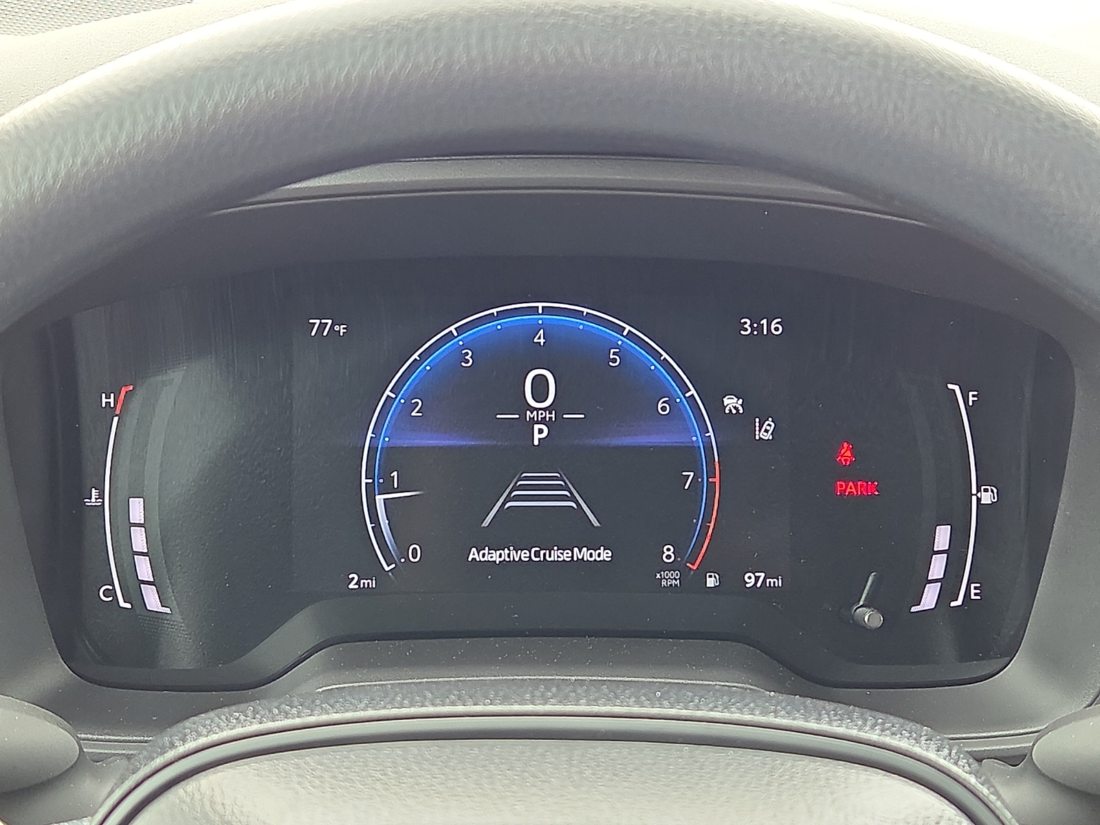 Low level warnings: Low level warning for oil, fuel, washer fluid and brake fluid